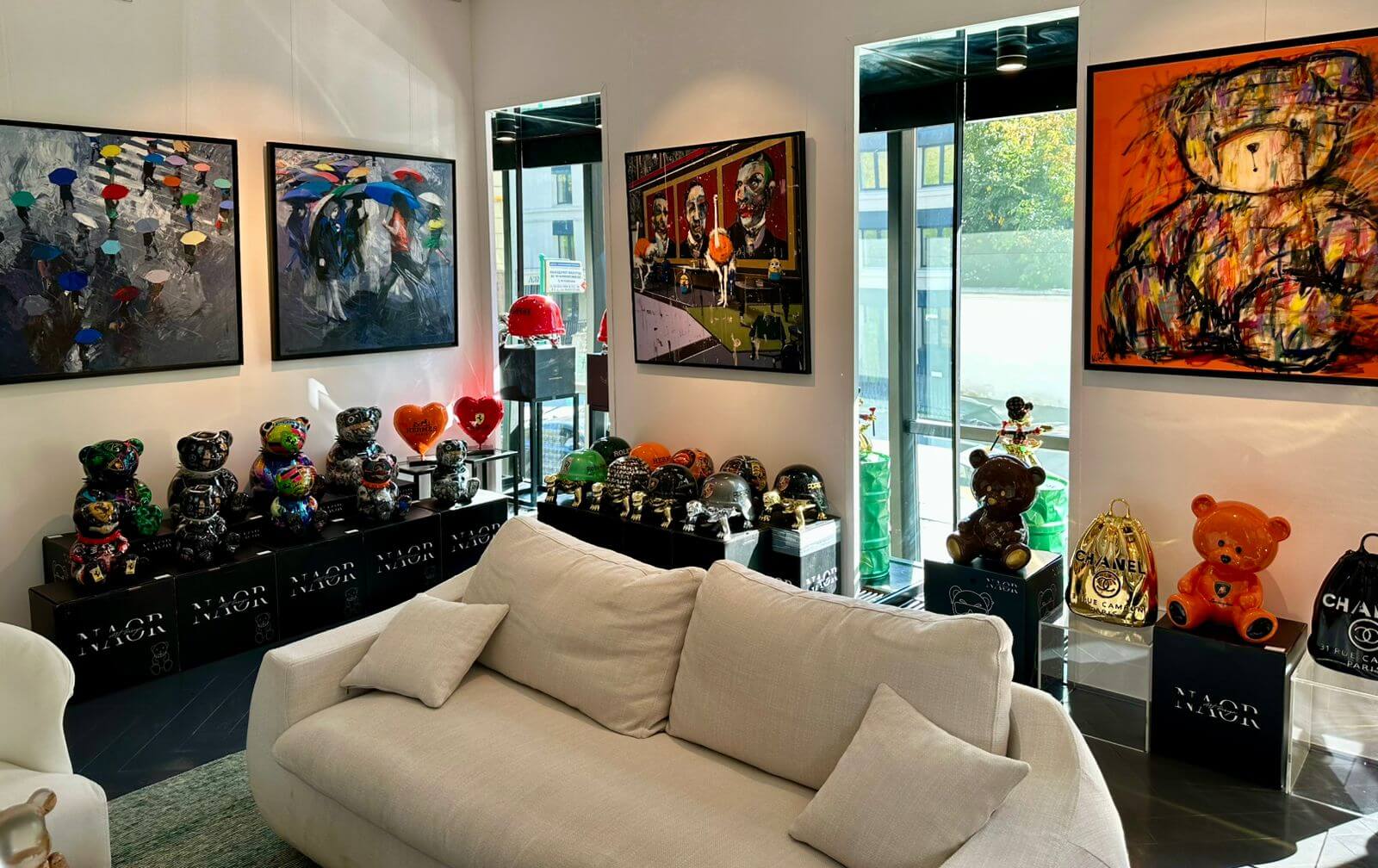 Его медведи-тотемы, выполненные из высококачественного пластика и вручную окрашенные, объединяют эстетику luxury-брендов и глубинные архетипы силы, защиты и лидерства.