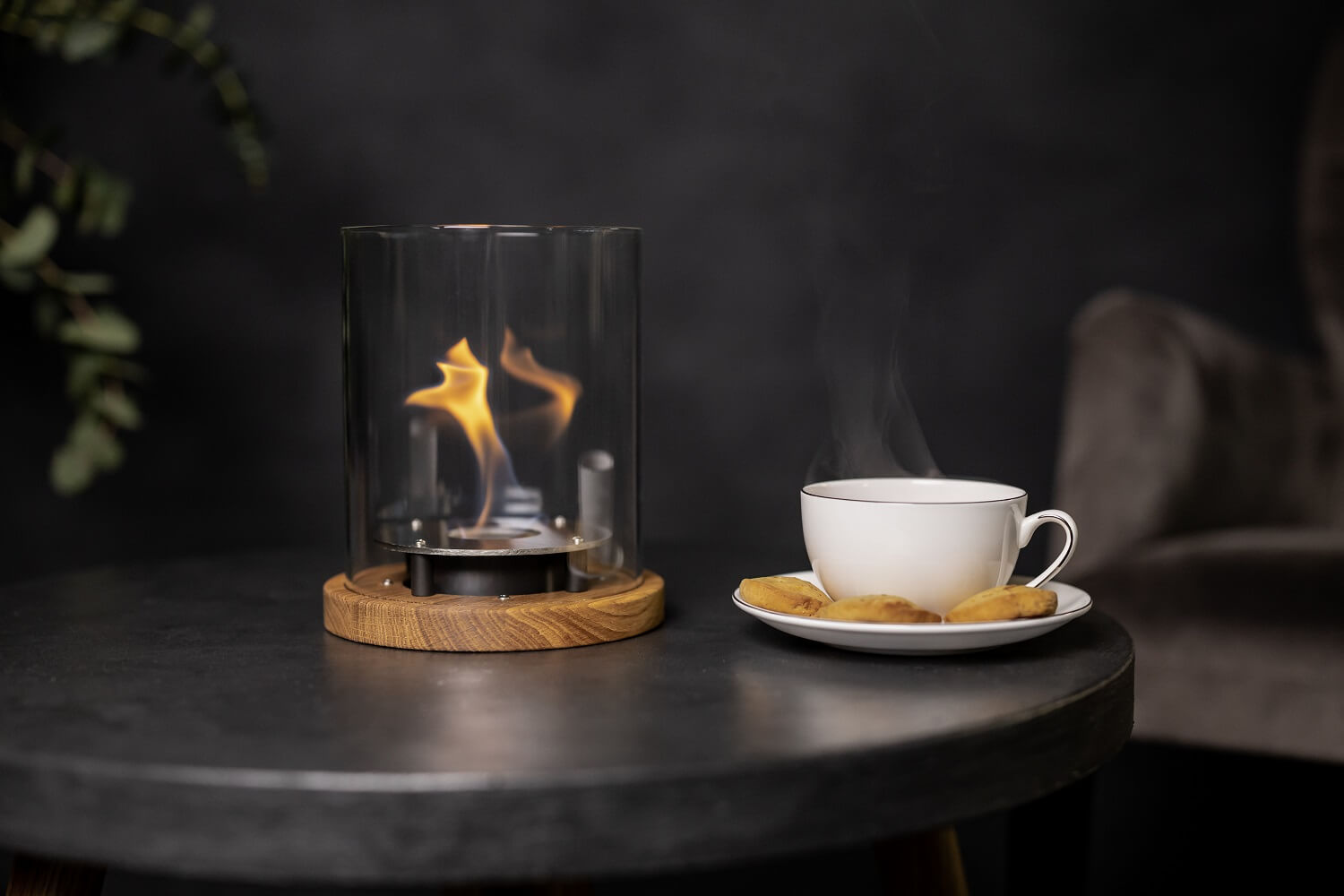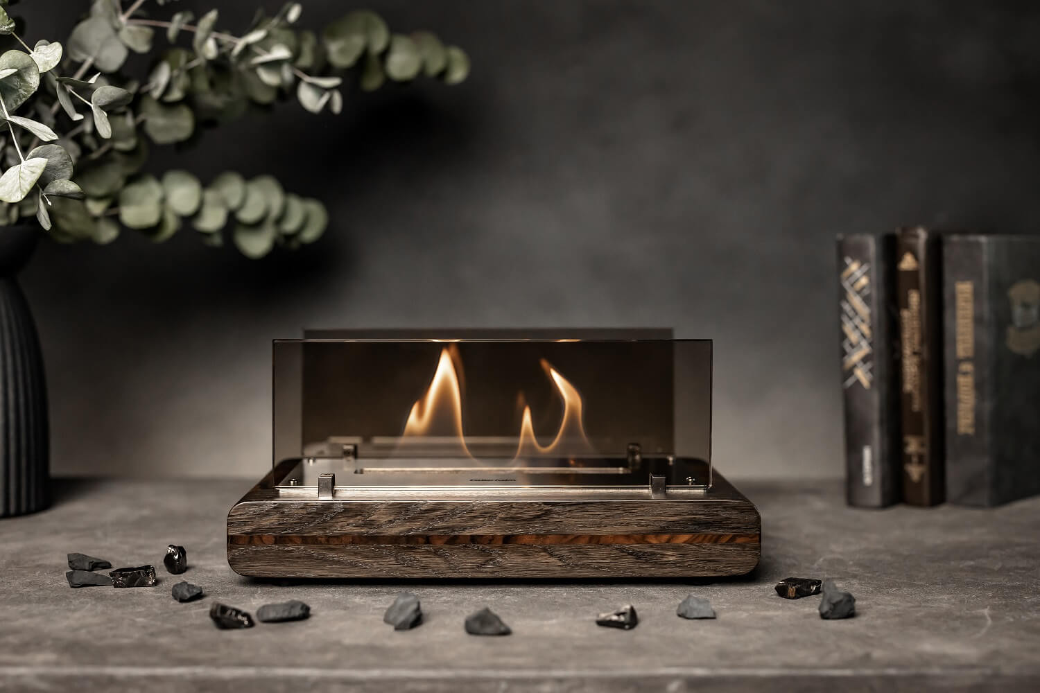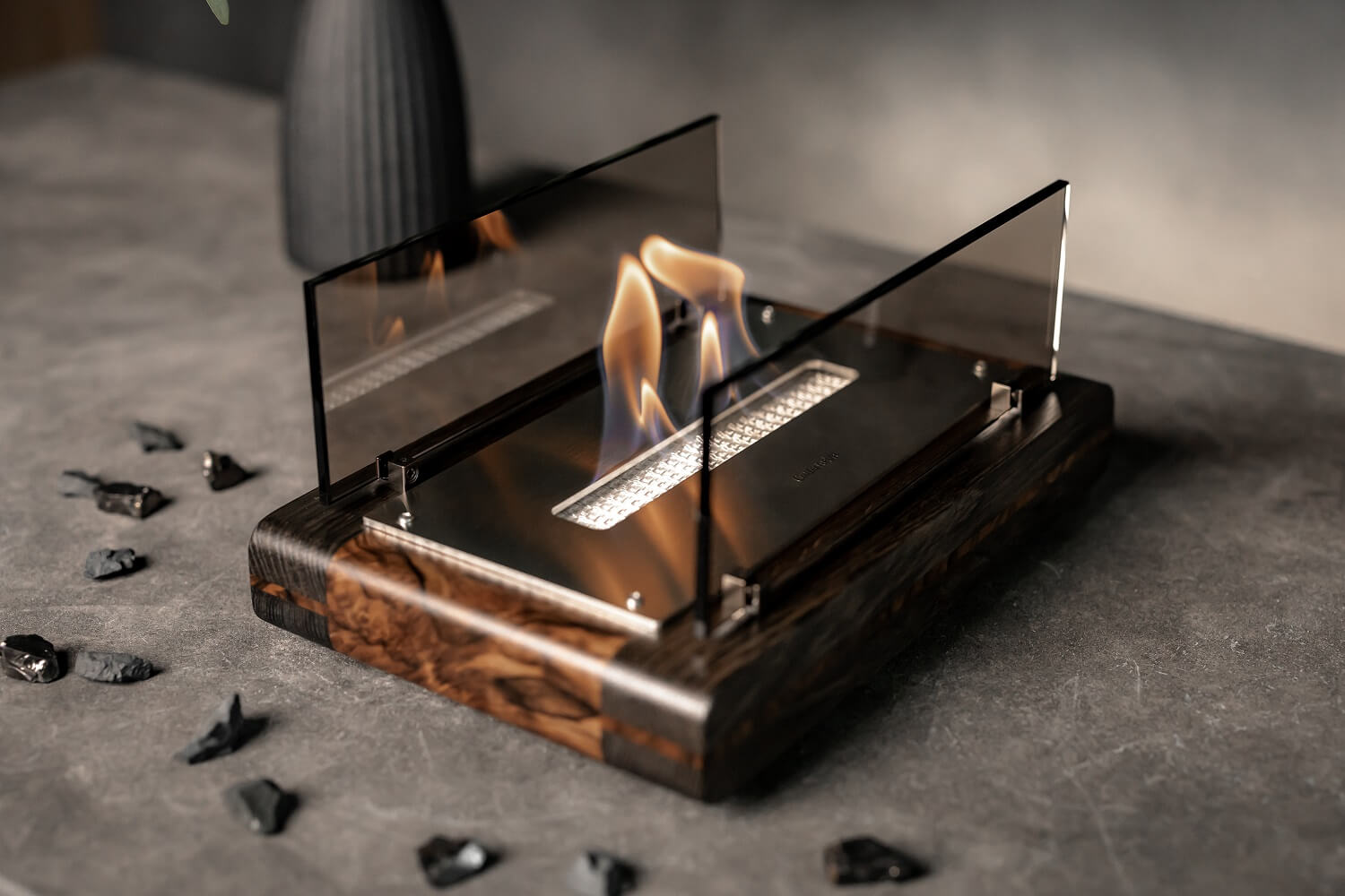 И ещё один важный момент. Настольный биокамин — это всегда объект. Его рассматривают. Его форма, материал, фактура становятся частью интерьера. Стекло, металл, экзотическое дерево — каждый материал задаёт свой тон.