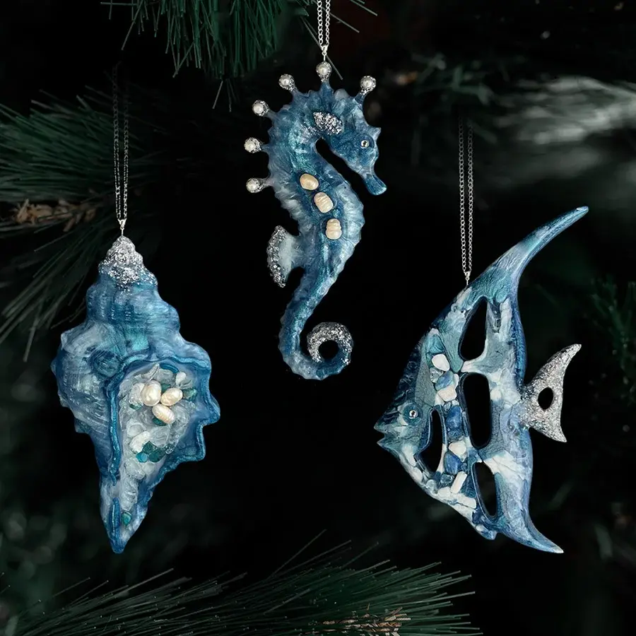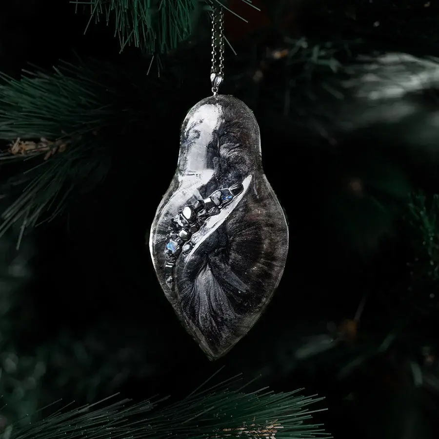 Одна из коллекций REGARDS — это эксклюзивные новогодние игрушки, созданные из ювелирной эпоксидной смолы с вкраплениями природных камней.