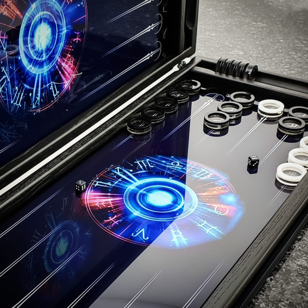 - Тактильность: Гладкая, прохладная поверхность стекла, контрастирующая с теплым деревом борта, создает уникальное ощущение. Фишки из акрила или, опционально, из латуни и нержавеющей стали, покрытые защитным слоем, идеально скользят по полю. Это подарочные нарды для тех, кто ценит чистоту линий и смелые визуальные решения.