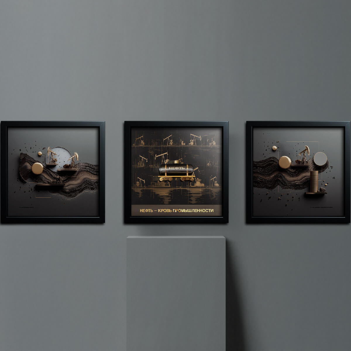 - Арт-картина с ДНК компании — например, золотой вагон с нефтью для нефтяной отрасли, композиция с экскаватором для строительной компании или для футбольного клуба мы создали многоуровневую композицию из дорогих материалов, отражающую энергию и философию бренда.